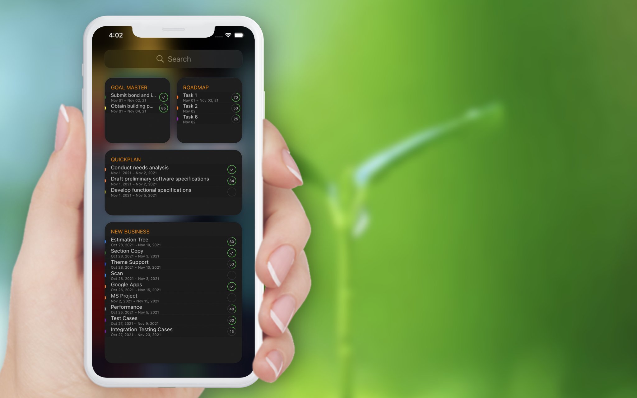 Add QuickPlanX widgets to your Home Screen or Lock Screen to see in-progress tasks at a glance. You can even choose which project to display.